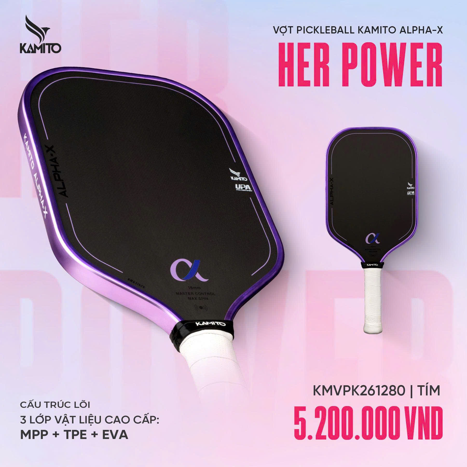 Vợt Pickleball Kamito Alpha X - Màu Tím