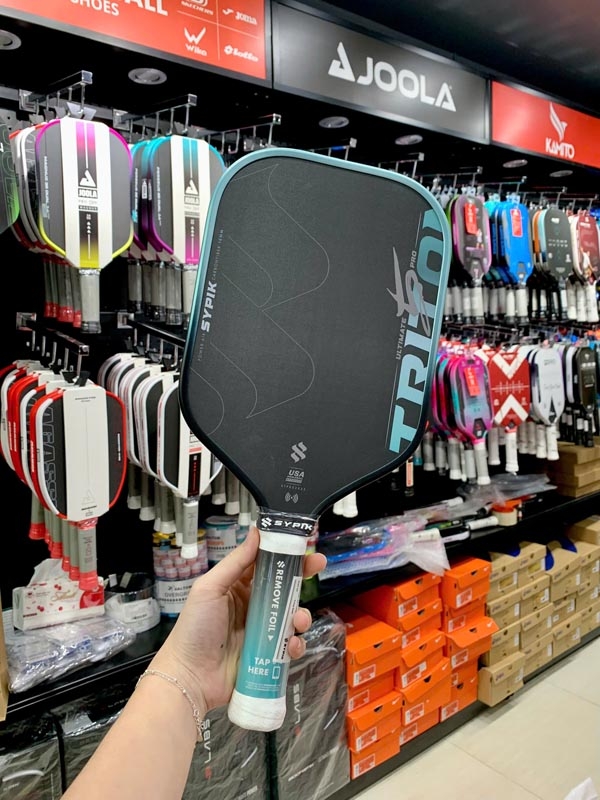 Tổng kết: Với độ dày 16mm ổn định, lõi QuantumCore Honeycomb Polymer hấp thụ lực tốt, mặt carbon T700 nhám hỗ trợ tạo xoáy và thiết kế màu xanh ngọc nổi bật, Vợt Pickleball Sypik Pro Tour Ultimate Triton 5 – Màu Xanh Ngọc là lựa chọn phù hợp cho người chơi trung cấp đến nâng cao đang tìm kiếm một cây vợt cân bằng giữa sức mạnh, khả năng kiểm soát và độ bền, đáp ứng tốt nhu cầu tập luyện lâu dài cũng như thi đấu phong trào.