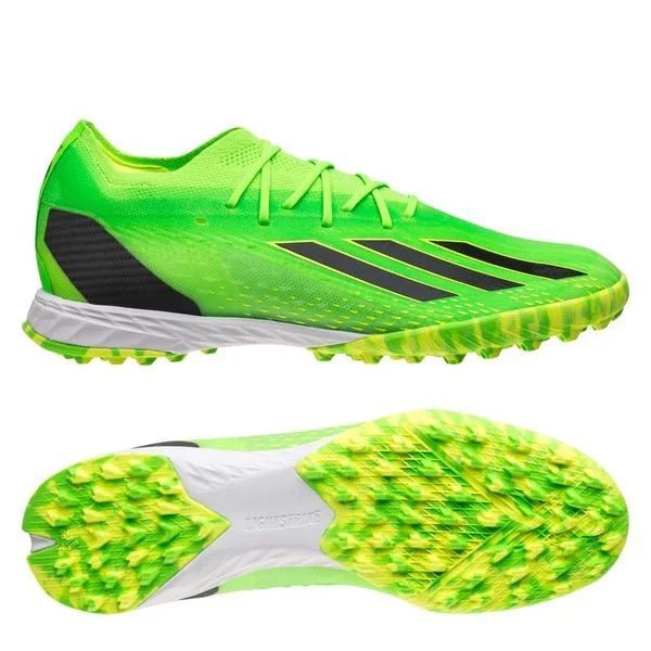 Giày đá bóng X Speedportal .1 TF Game Data - Xanh Lá - GW8973 là dòng giày chuyên sử dụng cho sân cỏ nhân tạo 5-7 người. Sở hữu phối màu rực rỡ nằm trong BST 'GAME DATA" - Nhằm phục vụ cho UEFA Women's Euro 2022 và giai đoạn đầu mùa giải 22/23. Phần upper được làm từ chất liệu da SpeedSkin V2 cao cấp mỏng mềm mại kết hợp với khung lưới Speedcage và thêm những lớp gai nhỏ Demonskin như ở phiên bản Predator Freak giúp gia tăng việc cảm nhận cũng như kiểm soát cho từng cú chạm bóng.