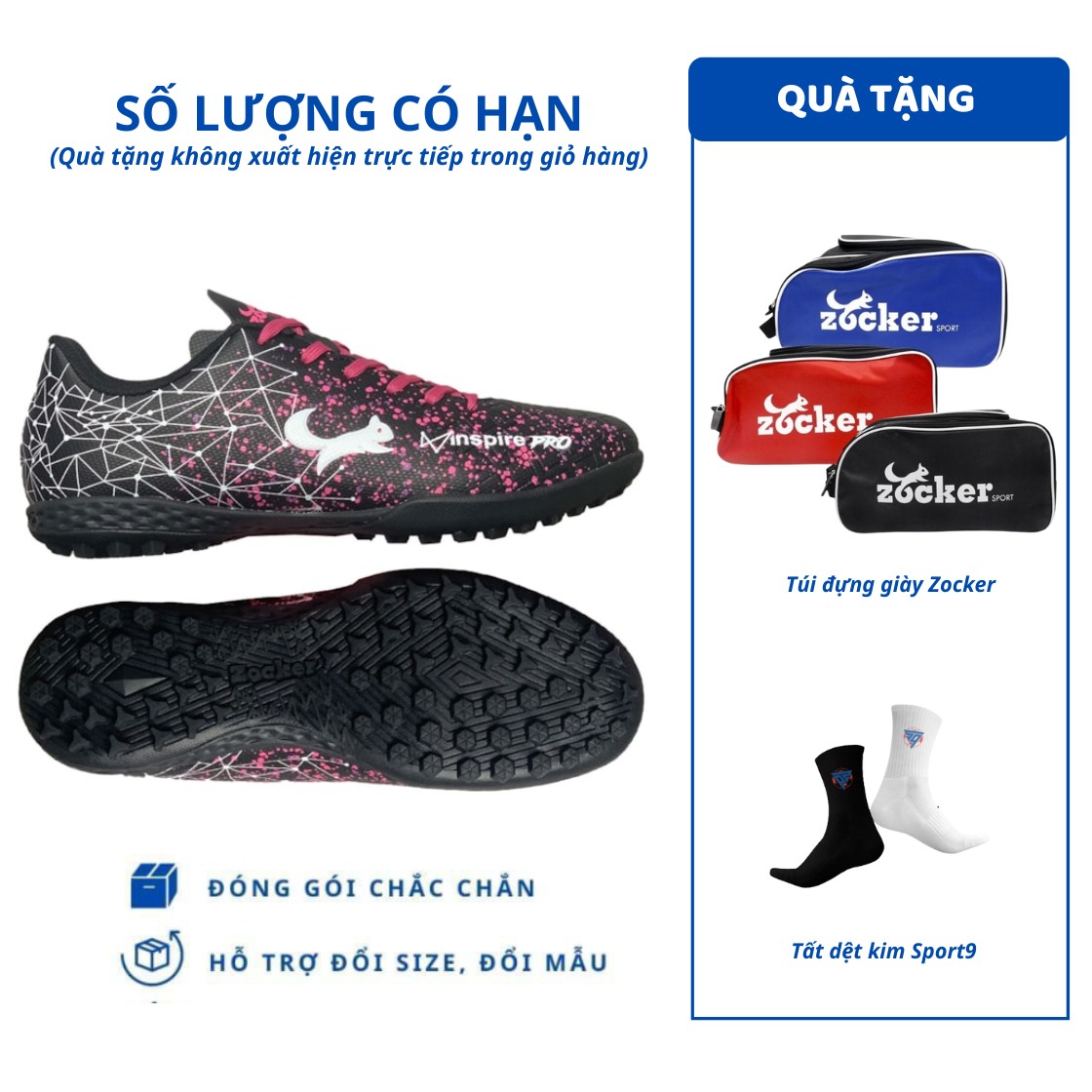 Giày đá bóng cỏ nhân tạo Zocker Inspire PRO - Màu Đen Hồng là phiên bản mới nâng cấp từ bản Inspire trước đó với mục đích nhằm nâng cao độ bền, khả năng ma sát giúp nâng cao hiệu suất chơi bóng của các cầu thủ.