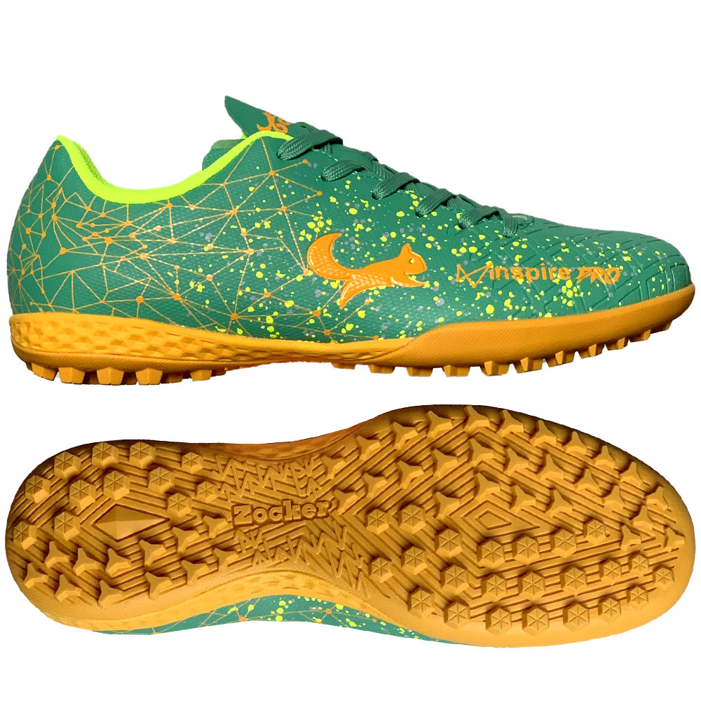 Giày đá bóng cỏ nhân tạo Zocker Inspire PRO - Màu Xanh Cam là phiên bản mới nâng cấp từ bản Inspire trước đó với mục đích nhằm nâng cao độ bền, khả năng ma sát giúp nâng cao hiệu suất chơi bóng của các cầu thủ.